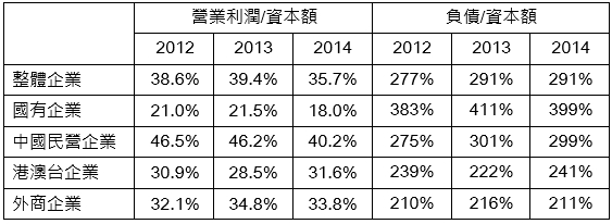 中國國企近年在產能過剩的挑戰下,經營效率普遍不如民間企業,根據中國統計局資料顯示,國企投入資金所獲得的報酬是所有企業類型最低的,並且在經營成效不佳下,國企所面臨的負債壓力也是最大的。