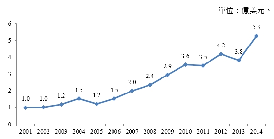 除太陽能產業之外,在風力發電產業部分,2013年中國離岸風力發電占全球比率僅6%,2015年預估占全球比重將達25%,至2016年預期將再成長40%;而在離岸風力發電之外,中國大陸占全球陸上風力發電的比重已超過40%,預估至2018年中國陸上風力發電占全球比重將接近50%,顯示中國於風電產業仍將持續投資,對企業而言同樣是值得關注的焦點所在。