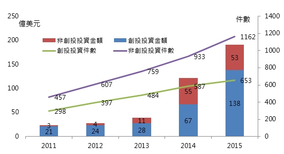 金融科技(Financial technology,簡稱FinTech),是指利用資訊或網路科技,從事輔助金融機構業務發展之資料蒐集、處理、分析,或是用來提升金融服務或作業流程之效率與安全性,亦或以資訊科技為基礎,設計、發展數位化、創新金融服務者。根據KPMG與CBInsights的報告指出,2015年全球金融科技的投資規模達191億美元,其中來自創投基金的投資暴增至138億美元,成長106%,為2011年6.6倍,整體金額較2014年成長約57%,總交易件數為1,162筆(如圖一所示)。