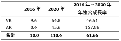 表1 2016年~2020年全球VR/AR裝置出貨量估計與預測
