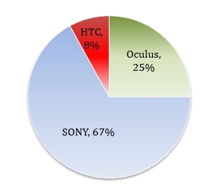 2016年上半年包括Facebook旗下的Oculus與宏達電均陸續推出需搭配PC使用的VR頭戴式裝置,其中OculusVR憑藉其擁有豐富的開發者社群以及Facebook的社群平台資源,加上微軟在作業系統、Xbox遊戲上的支援,率先進入市場,爭取消費者認同,但由於受到零組件缺貨導致出貨時程明顯遞延,預計8月之後才能恢復正常供貨。不過,由於其具備價格優勢,解決出貨問題之後,仍將對於HTCVive形成一定程度威脅。