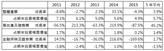 表1 中國大陸台商認列投資損益成長率及占投資帳面價值