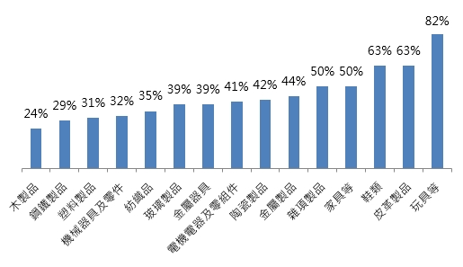 註:圖中數字代表來自中國進口占該類別整體進口比例