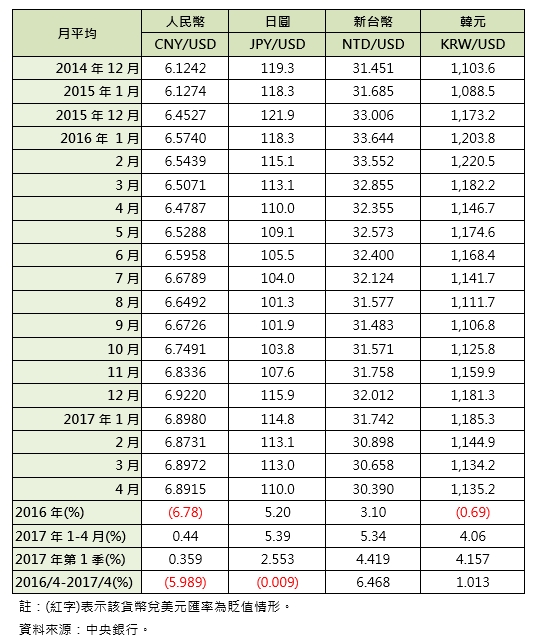 美國財政部在2017年4月14日(美國時間)公布「美國主要貿易夥伴外匯政策報告」(Foreign Exchange Policies of Major