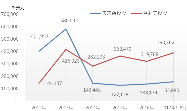 依經濟部投資審議委員會統計台美間投資概況,如圖1所示,自2014年起台灣赴美國投資金已經超過美國來台投資額,且今年前8個月,核准台商赴美投資額3.9億美元,已超過2016年全年的總投資額度。未來像台塑集團及中油分別投入94及100億美元於美國設立石化一貫案等,再加上鴻海啟動100億美元面板廠投資案,以及義聯集團33億美元電爐煉鋼廠等,預估台商這波「在美國製造」的投資規模可能超過300億美元。