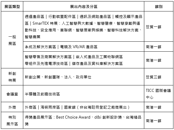 IoT)設備需求興起;「商業解決方案區」更名為「智慧零售及商業解決方案區」,以便廠商展出各種應用在無人商店、新店型、新零售的智慧零售解決方案與對應設備。另外包括車聯網、智慧醫療、資料庫解決方案、先進電源技術、人工智慧、大數據與前瞻技術展示等,也都列入COMPUTEX展區名稱。