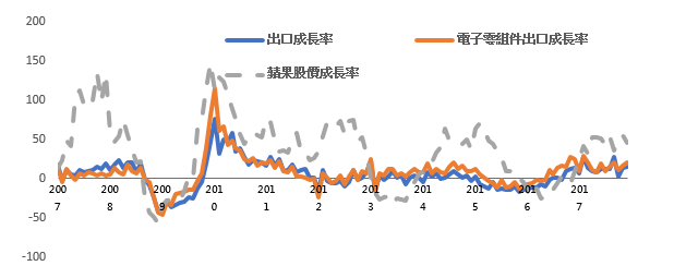 圖2 蘋果公司股價與台灣電子零組件出口