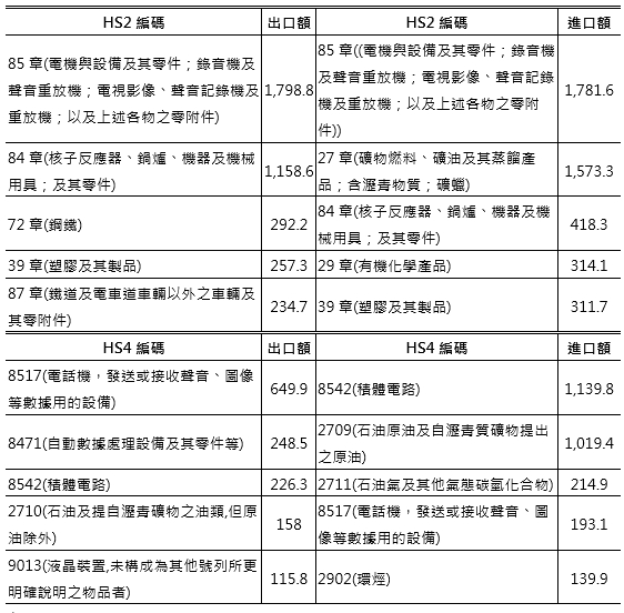 從商品結構來看,如表一所示,2017年中國對「一帶一路」沿線國家出口商品出口額最高的是“核反應爐、鍋爐、機器、機械器具及零件(HS Code 2位碼