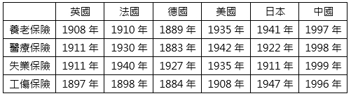 表1 英美法及中國社會保障制度的主要內涵與建置時間