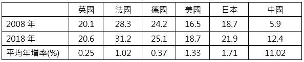 社會保障支出是反映一個國家或地區對社會保障投入情況的集中度,代表這個國家或地區對社會保障制度的重視程度。雖然支出水準高不代表人民的社會保障待遇高、或具公平性與持續性,但客觀地說社會保障支出水準持續增加,民眾對社會保障比較有感。尤其中國社會保障制度框架隨著經濟發展而逐漸成形,近十年來相對於歐美日等先進國家,中國在社會保障支出由2008年占GDP的5.9%增加至2018年12.4%,平均年成長率為11.02%,高於同時期GDP平均年增率8.2%,顯示目前中國社會保障支出規模占GDP比重雖不如歐美日,但平均年增率則有兩位數成長超過歐美等國。