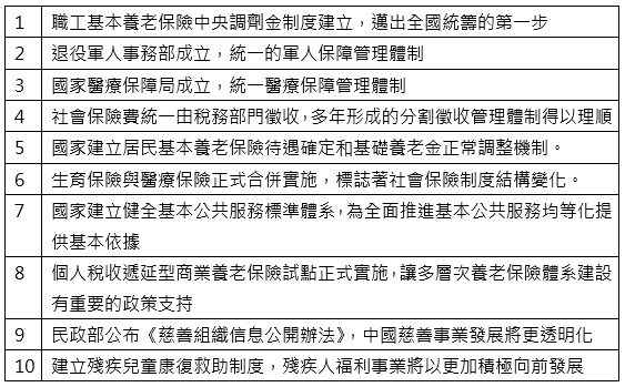 資料來源:中國社會保障學會(2019.1.3),《2018年中國社會保障十大事件出爐》,網址:http://www.caoss.org.cn/article.asp?id=526。