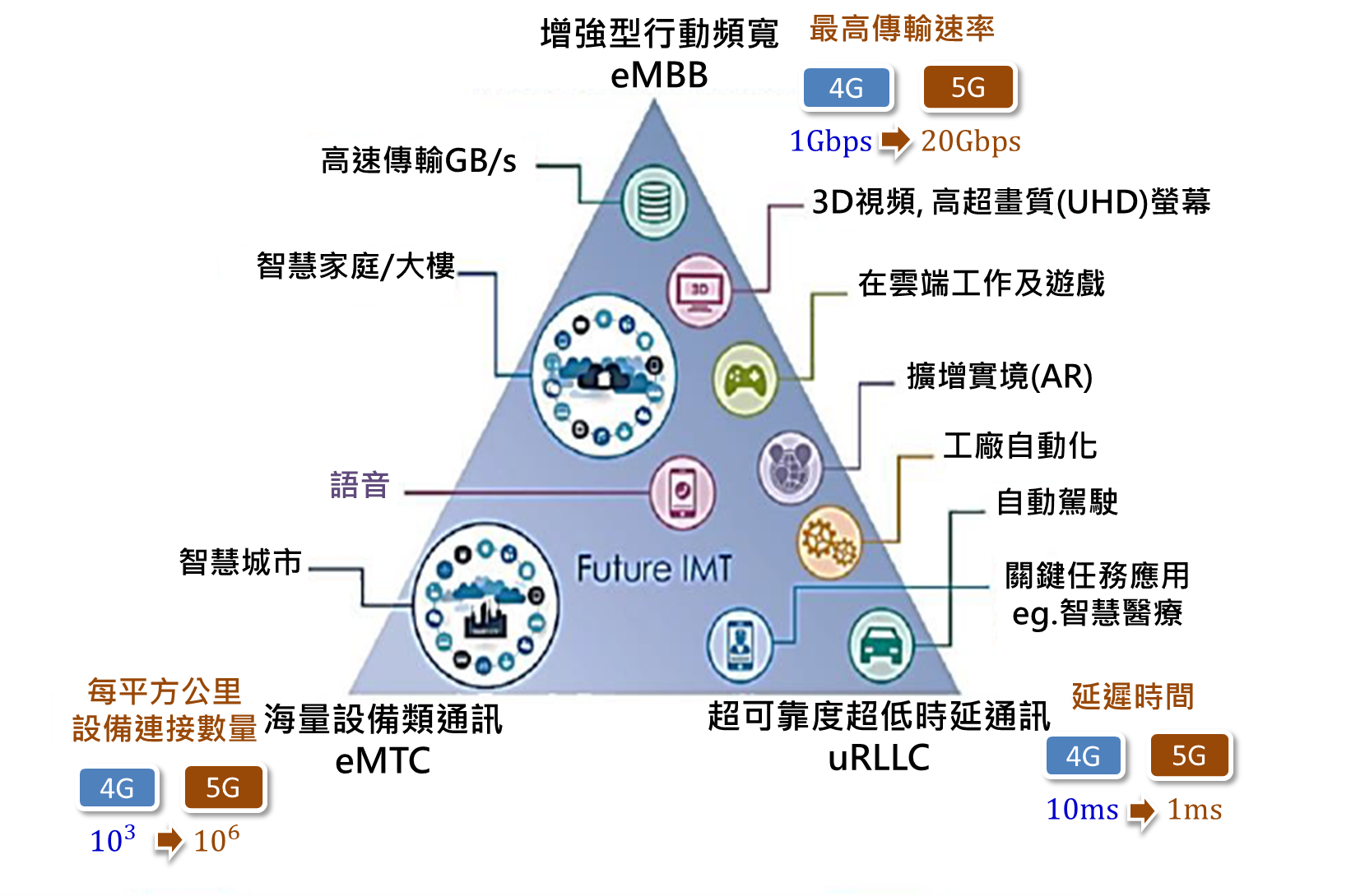 coverage),對高用戶區需高容量,以及需要廣域涵蓋能達到無縫涵蓋及中高速的傳輸等用戶,如提升用戶對虛擬實境與擴增實境等各種娛樂業應用型態之服務體驗。