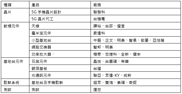 表2 台廠切入5G供應鏈