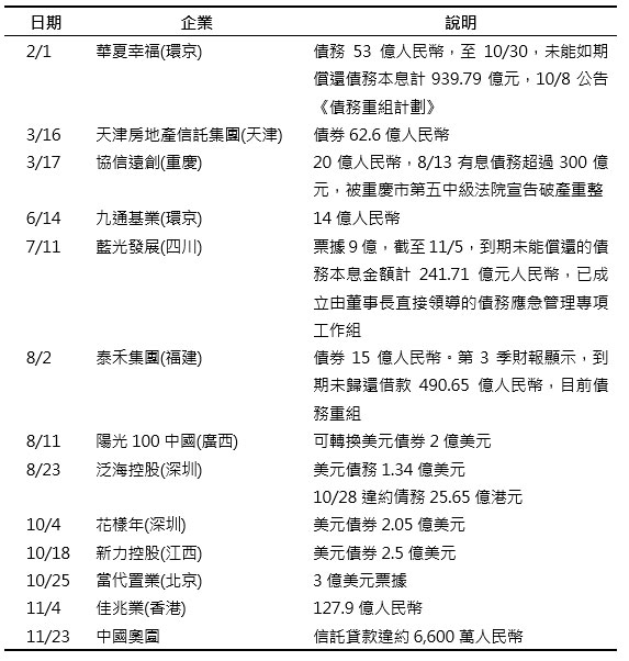 資料來源:聯合報,《陸房企違約債務衝2,000億 較去年大增1.5倍》