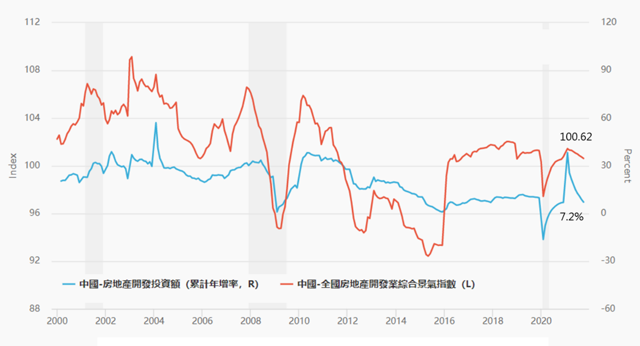 85%。然而恒大集團是中國目前負債最多的企業,總負債高達3,000多億美元,債務規模龐大,後續還款壓力,這使得原本因COVID-19疫情肆虐,衝擊的房地產市場,再因恆大風暴拖累,進而影響中國經濟成長速度。