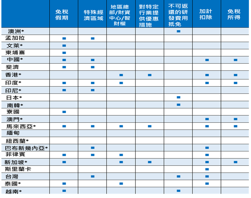 資料來源:KMPG,《亞洲:BEPS對亞太地區租稅優惠政策的影響》https://mp.weixin.qq.com/s/9ZnyTGDqMUPyMDl3tq1f5Q。