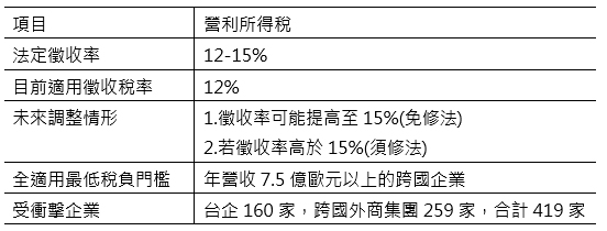 資料來源:中央社(2021.11.21),《因應全球最低稅負制,財政部評估調高國內稅率》。
