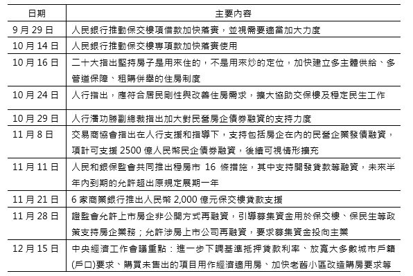 表4 二十大前後官方針對房地產市場的主要措施