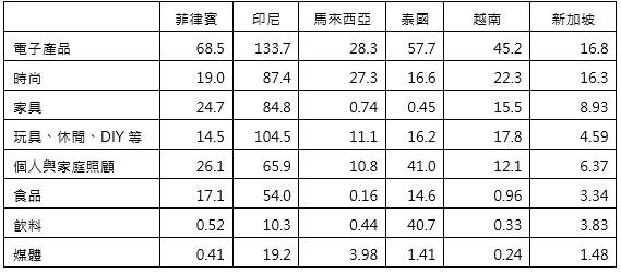 由於東南亞也是新南向政策國家,近年來更成為台商重點投資地區之一,包括科技業對泰國、越南、馬來西亞等地,以及傳統產業對印尼、菲律賓、越南等地的投資比重增加,加上該區域自2022年起啟動《區域全面經濟夥伴關係協定(RCEP)》,成員國間90%以上的貨物貿易在未來將實現零關稅,進而帶動區域經濟發展,因此,如何讓台商從生根到深耕當地市場將成為未來企業經營重點,像目前東南亞各國電商銷售以電子3C為最大宗,此類產品除標準化程度高外,是台商較具高競爭優勢的利基產品,可率先進入東南亞電商市場,另外,像馬來西亞及越南在美妝等時尚系列產品、泰國及菲律賓消費者在個人或個人照顧等個性化商品需求程度,都可以成為台商切入電商的產品項目之一。