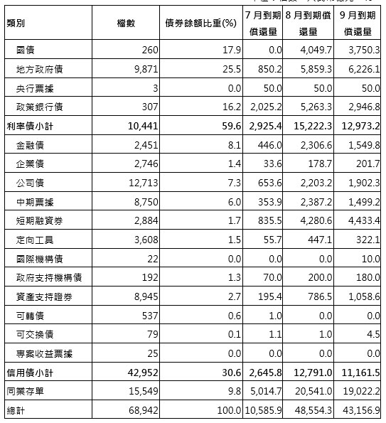 單位:檔數、人民幣億元、%