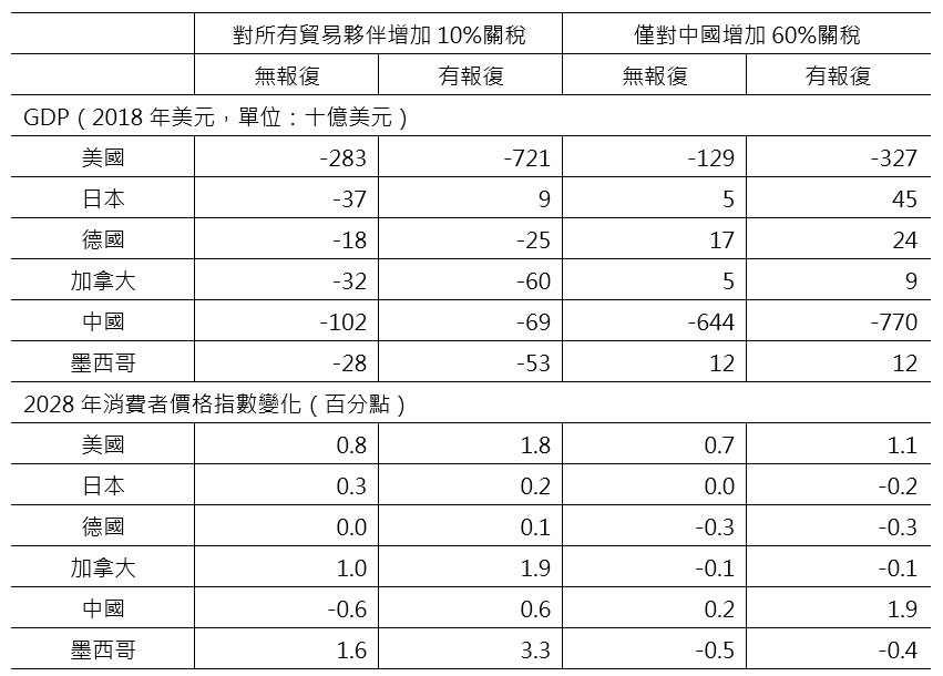 資料來源:W. McKibbin et al., (2024), “The International Economic Implications of the Trump Program”, PIIE