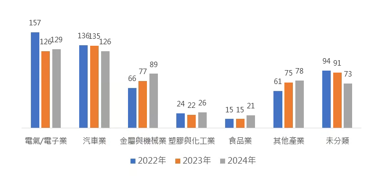 在產業面向,如圖二所示,傳統大宗的汽車與電子仍是最大應用領域,但增長乏力甚至下滑;相對之下,食品、塑膠化工與金屬機械產業需求快速攀升,成為推動市場的新動能。整體而言,全球市場正從「高度集中於汽車與電子」逐漸走向「多元化應用」,顯示工業機器人正全面滲透更多產業場景,並在區域與應用結構上展現出新的成長重心。