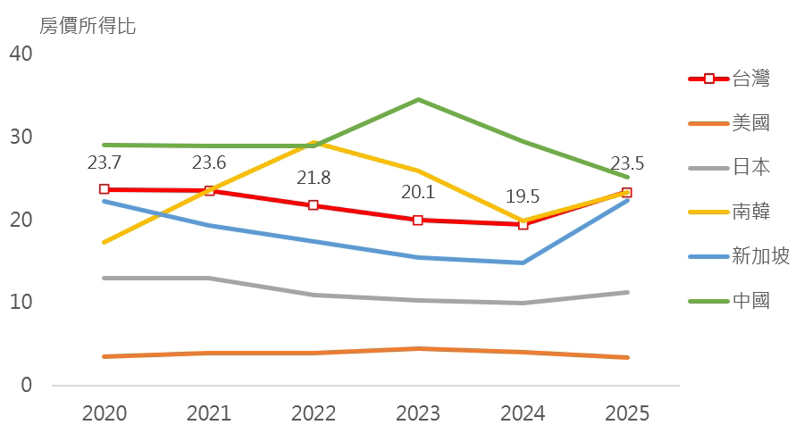 資料來源:市場先生(2025.12.19),《台灣房價所得比–2025年國家及主要城市全球排名》。